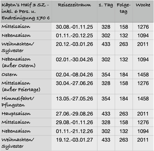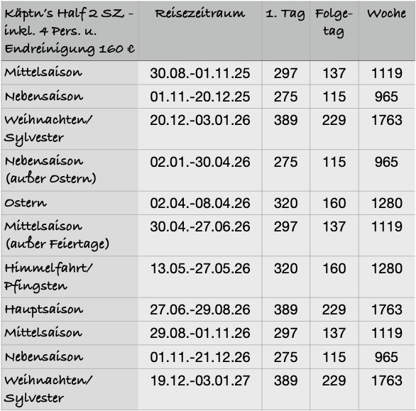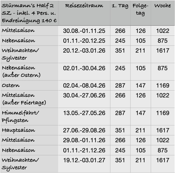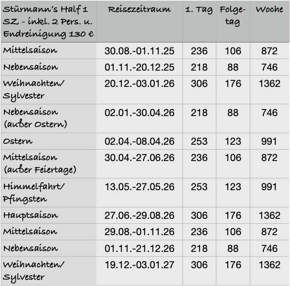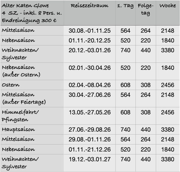 * Für jede weiter Person erhöhen sich die Preise um 10 €/Übernachtung.